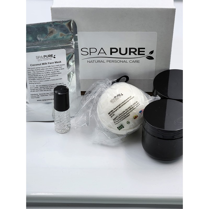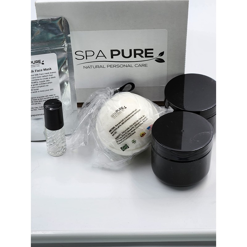 Spa Kit, All-Natural, Gift Box Includes Luxurious Coconut Milk Bubble Bath, Whipped Soap Scrub, Body Butter, Coconut/Clay Facial Mask, Roll On (5 Piece Set) (Oatmeal, Milk & Honey)