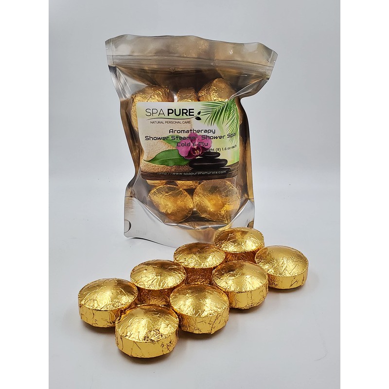 Spa Pure Cold Relief Aromatherapy: Shower Steamers, Shower Bombs, Bath Melts, USA Made with 100% Pure Essential Oils - Transform Your Shower 8 Count (Pack of 1)