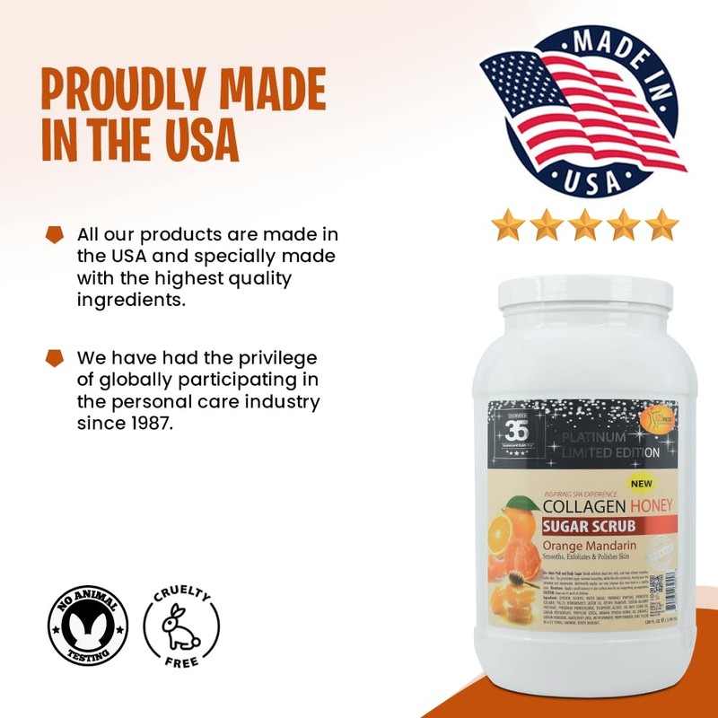 Refresh and revitalize your skin with SPA REDI's Orange Mandarin Sugar Scrub. Infused with the invigorating scent of orange and mandarin, this scrub gently exfoliates and moisturizes, leaving your skin soft, smooth, and glowing. The 1-gallon size is perfect for spa use or for those who love indulging in regular spa treatments at home. Transform your bath or shower into a citrus-infused spa experience with SPA REDI's Orange Mandarin Sugar Scrub.