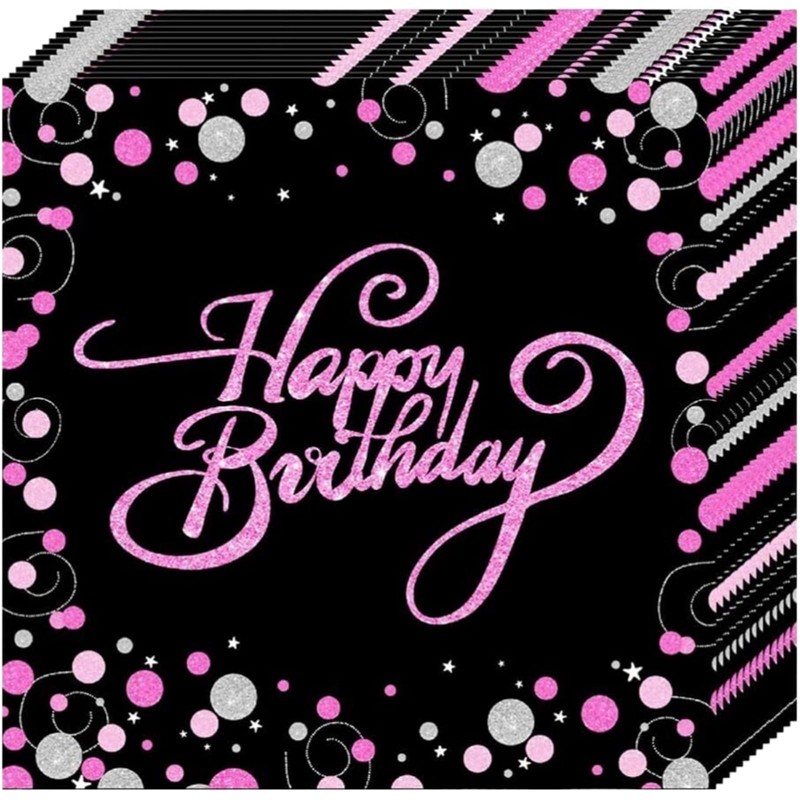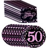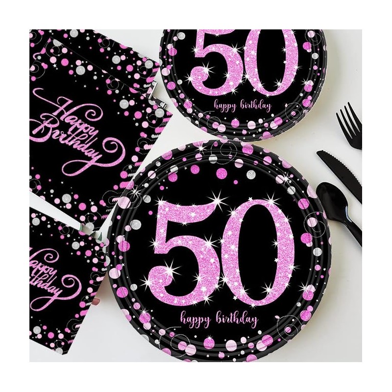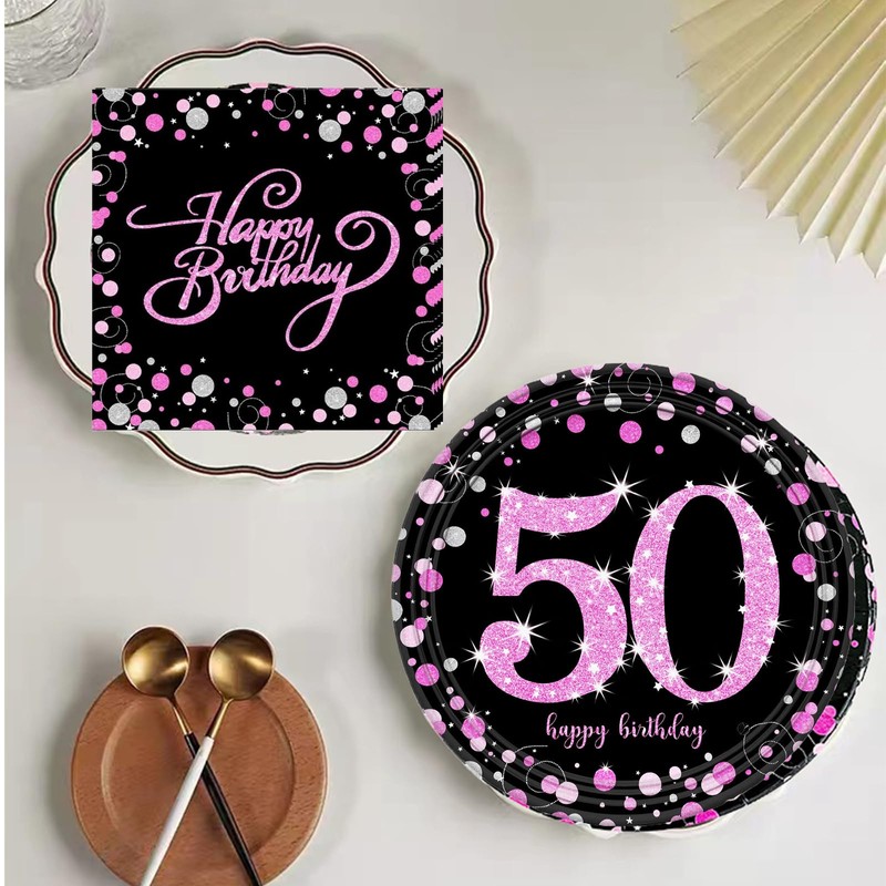 - 1.Quantity: Total 16pcs Happy Birthday Napkins and 16pcs 50th Plates,Pink and Black Color.