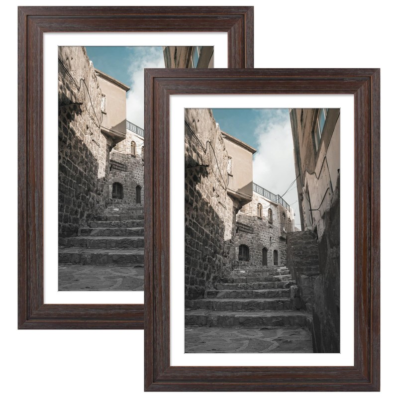 Space Art Deco, Wood 13x19 Poster Frame Distressed Dark Brown - Display 11x17 Pictures with Mat or 13x19 Without Mat, Horizontal or Vertical Wall Gallery Frame with Real Glass for Artworks (2 Pack)