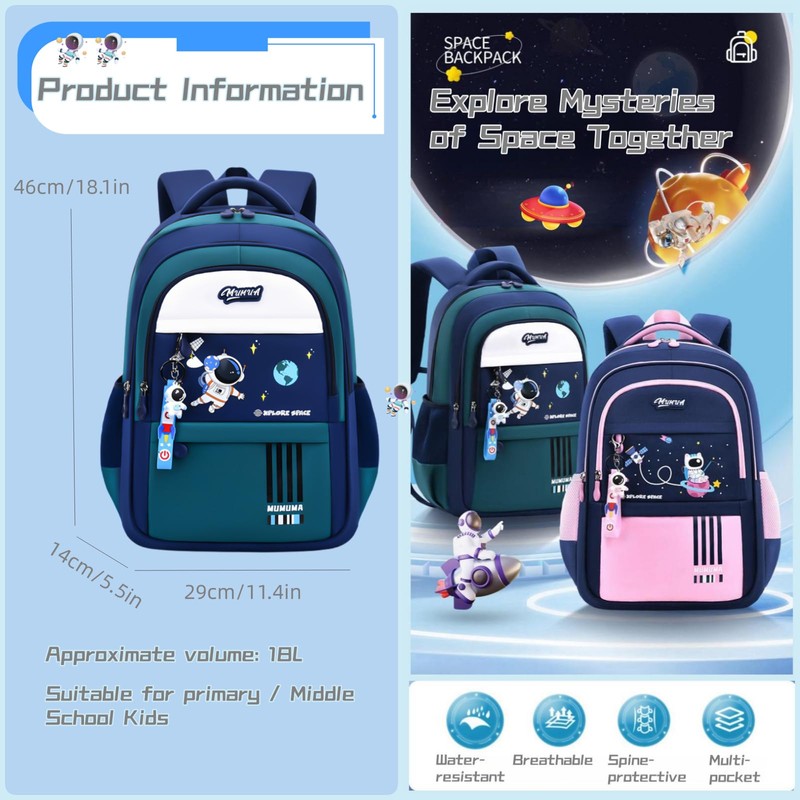 - 【Astronaut Backpack for School Boys】 Ideal astronaut boys backpack for primary or middle school: 11.41*(L)*5.51(W)*18.11inch(H), 29(L)*14(W)*46cm(H); Approximate capacity of astronaut school bag for boys: 19 Liters.