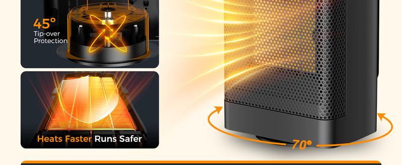 Space Heater for Indoor, Portable Electric Heater for Home with Thermostat, 1-12H Timer, Eco Mode and Fan Mode, 70°C Oscillation, 1500W PTC Ceramic Fast Safety Energy Efficient Heater for Office Bedroom