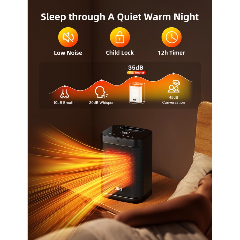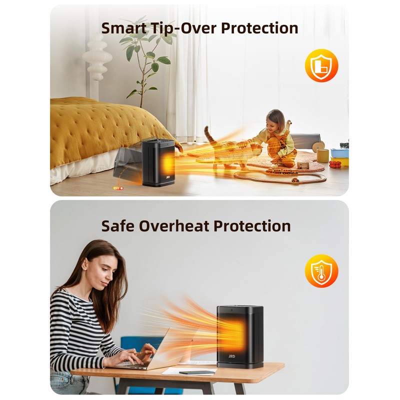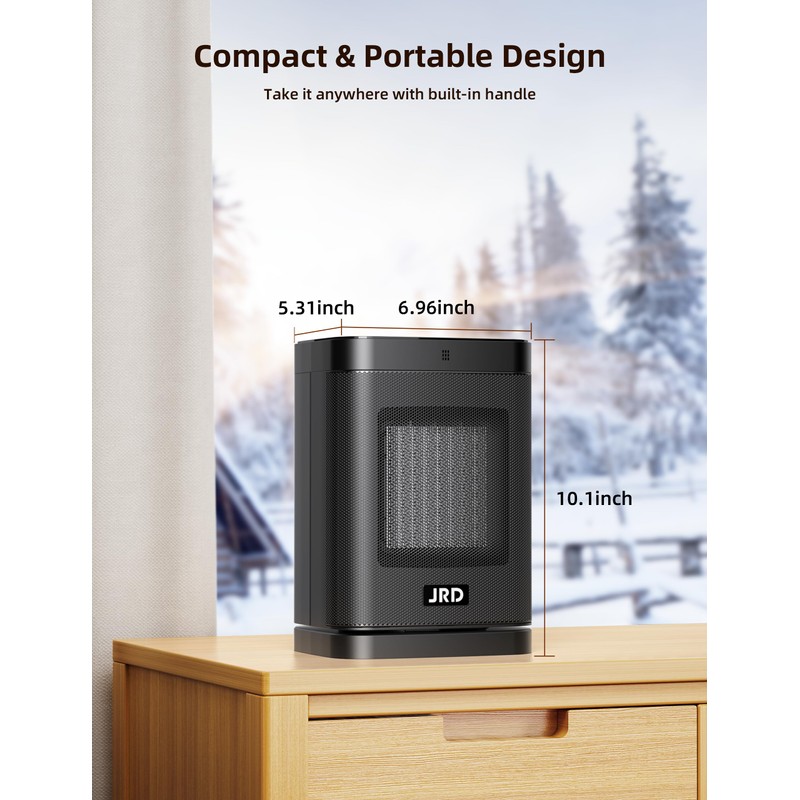 - Rapid Heating: This JRD 1500W space heater delivers warmth quickly with advanced PTC ceramic technology. The heating areas are up to 200 square feet.