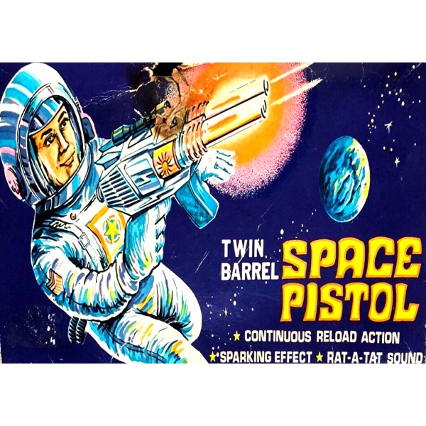 Space Pistol Twin Barrel Label Handmade Fridge Magnet 2.5" x 3.5" 1800 in store