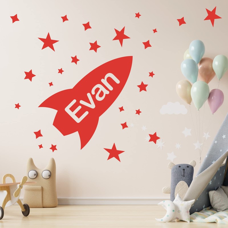 • Personalise this Rocket and Stars themed wall art with your Name!