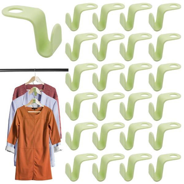 Space-saving hangers, pack of 40 space-saving hangers, clothes hangers, connecting hooks, stacked mini hangers, clip drop connection handle for hangers, wardrobes, green