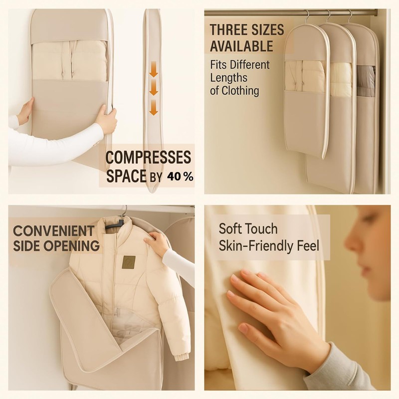 💕Our space saving hanging garment bag will not compromise the fluffiness of down jackets, keeping clothes in a neat state.