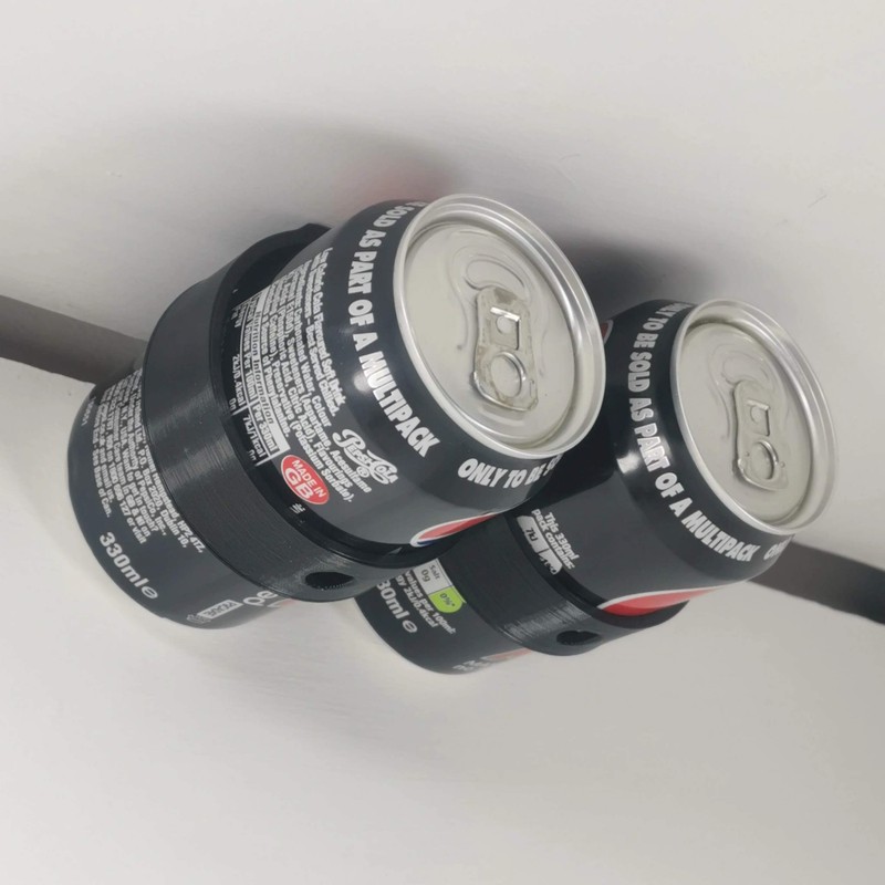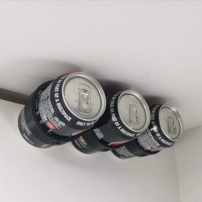 - Drink can holder that can be mounted vertically or horizontally. Designed to use the above space in cupboards or even keep drinks stable when you're on the go in a caravan or motorhome.