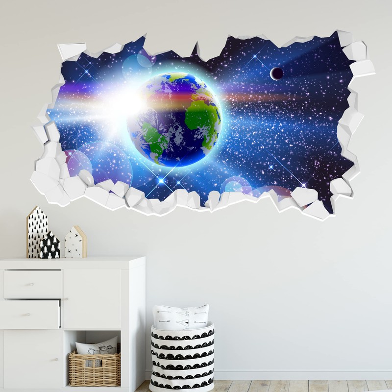 Space Wall Sticker - Earth in Space Broken Wall Decal Art (120cm Width x 65cm Height)