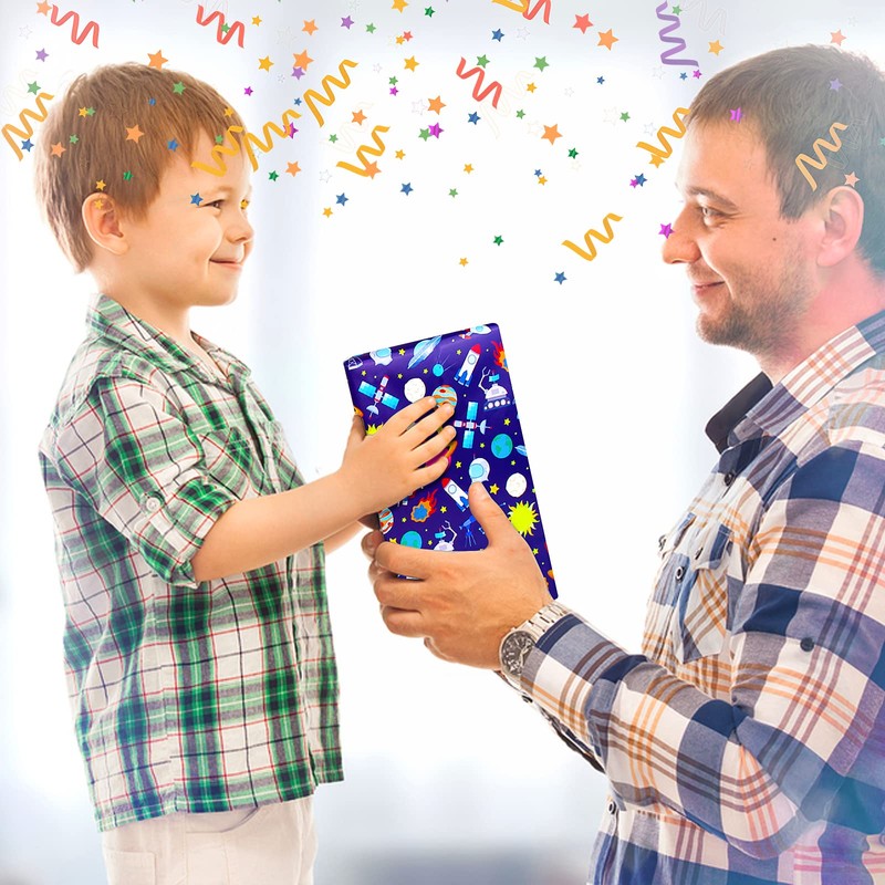 - 🚀Space Gift Wrap Set Measurement: Each sheet measures 70 X 50CM, Each sheet of boys wrapping paper kit is sized for wrapping medium and small gifts, please pay attention to the size for your need
