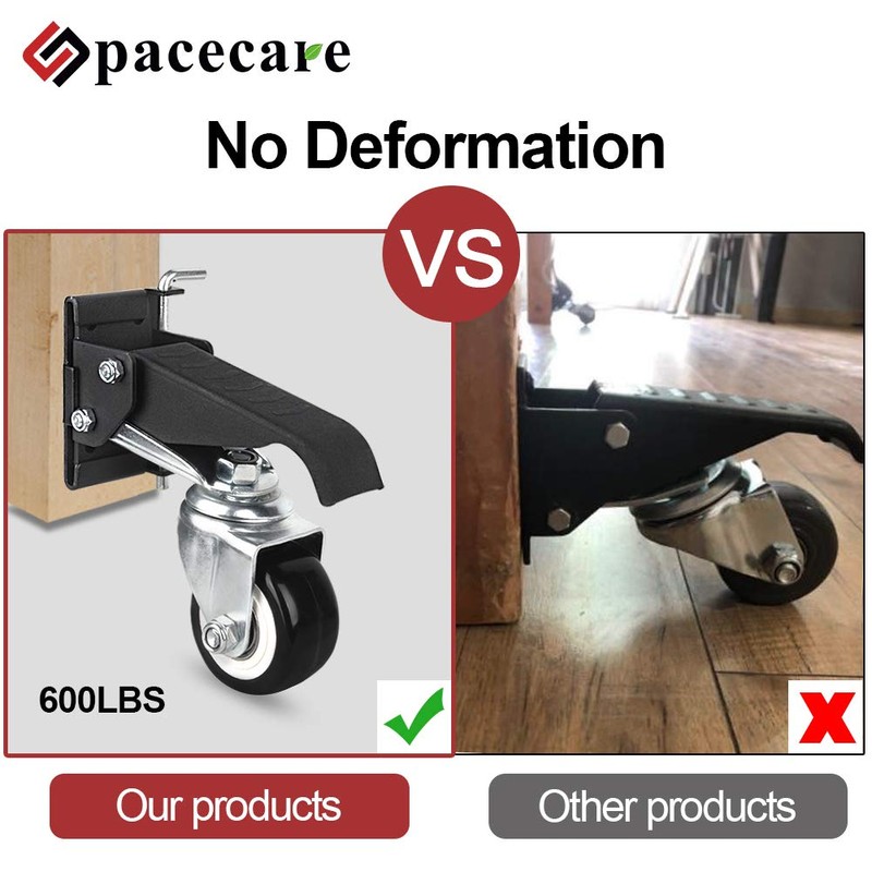 SPACECARE Workbench Casters kit 600Lbs Heavy Duty Quick Release 2 Mounting Options Retractable Workbench Stepdown Caster Wheels Adjustable Polyurethane Durable Steel Construction (Set of 4)