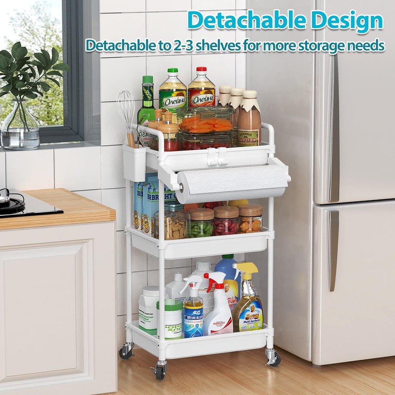 - Towel Rack Design - The rolling storage cart is design with a removable towel rack that you can install on any shelf. It can be used as a kitchen paper towel rack and toilet paper holder or put in the laundry room to hang cleaning rags, etc.