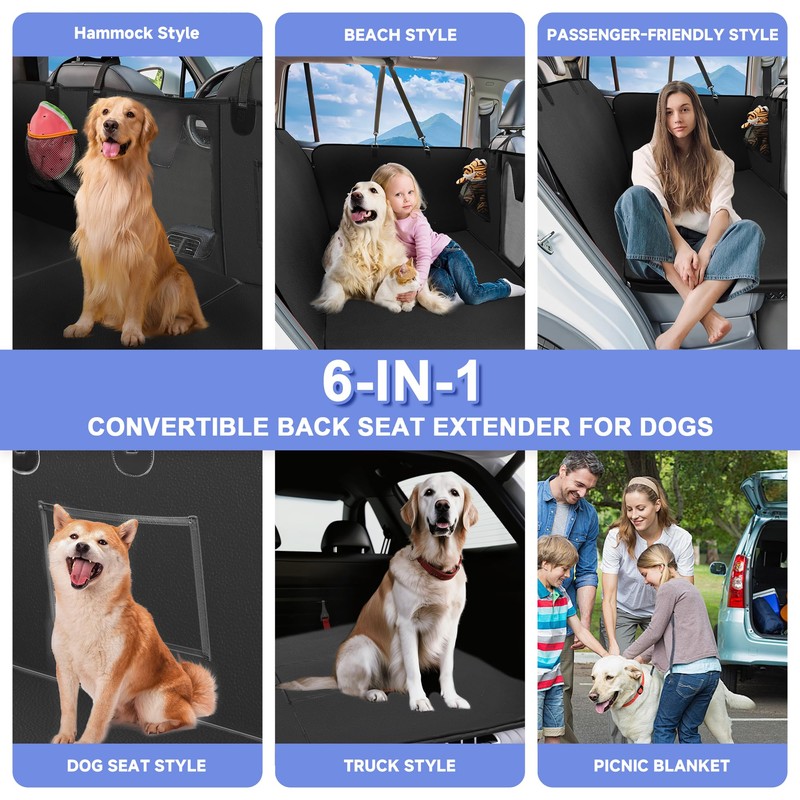 - EXPANDED SPACE CAR SEAT COVER FOR DOGS: The back seat pet cover for dogs features three removable load-bearing panels, increasing usable space by 45% and supporting up to 400 pounds. Provides plenty of room for your dog to rest while traveling