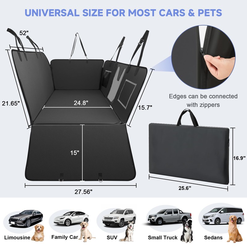 - BREATHABLE MESH WINDOW & STORAGE POCKETS:This dog car hammock comes with breathable mesh windows to help relieve your pet's anxiety. Two storage pockets keep pet accessories neatly organized. Your dog will enjoy being in the car and won't feel stressed