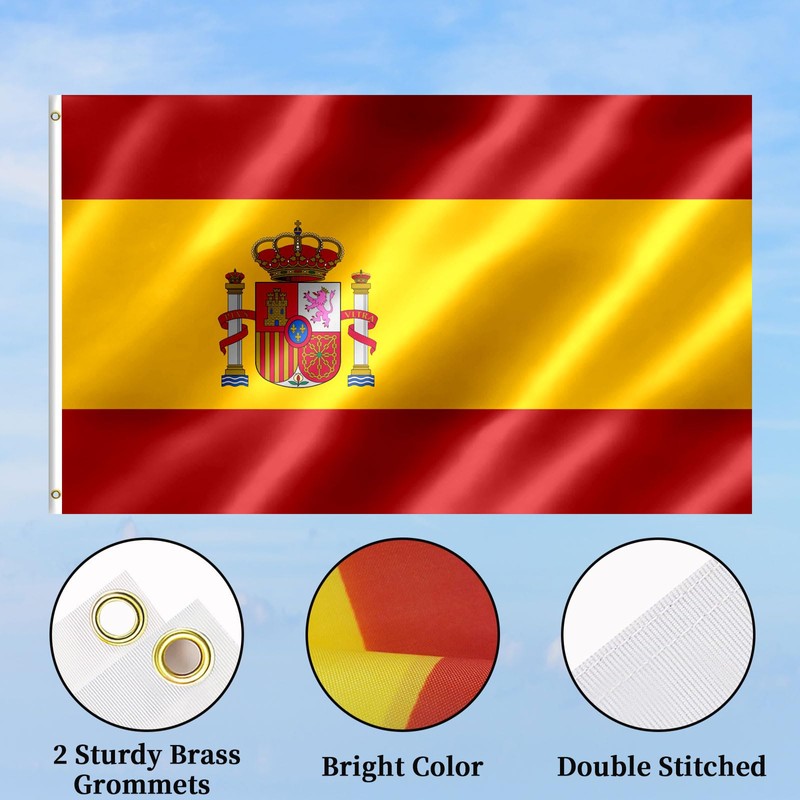 Spain Flag 3x5 FT Spainish Flag With Brass Grommets Fade Proof For Outdoor Decor(Spain)