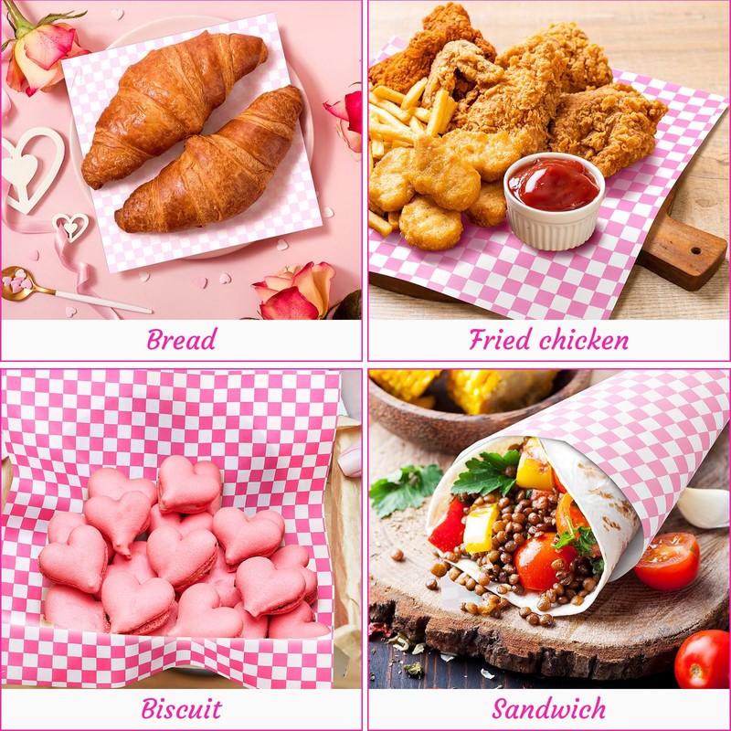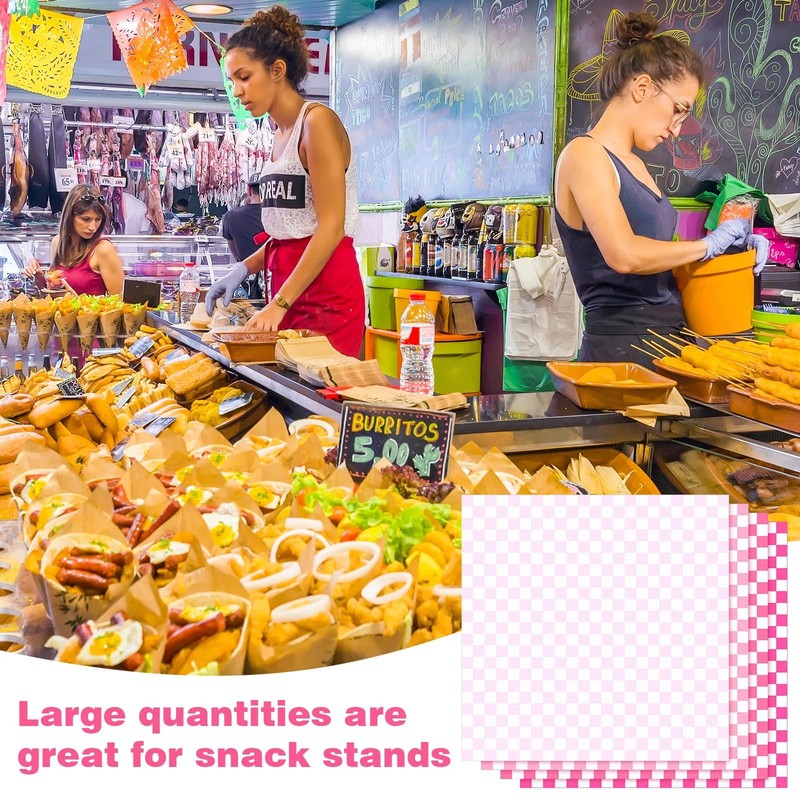 Spakon Spakon 1000 Sheets Wax Deli Paper Sheets for Food 12 x 12 Inch Checkered Dry Waxed Deli Basket Liners for Sandwich Wrapping, Food Basket Liners, Picnic party(Pink-white)