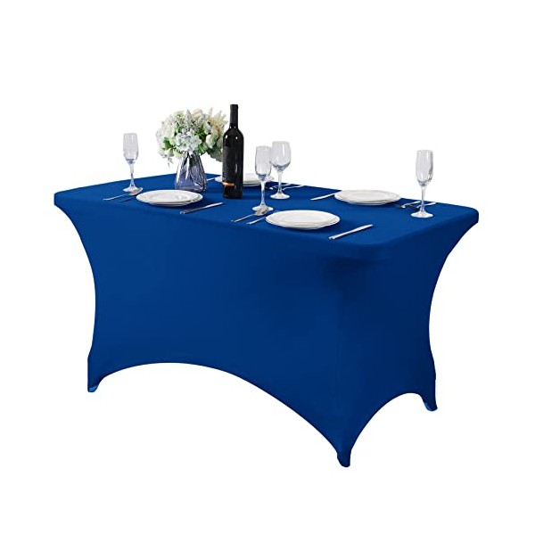 Spandex Table Cover for 4FT Table Universal Fitted Stretch Tablecloth for Party, Banquet, Wedding and Events-Classicblue