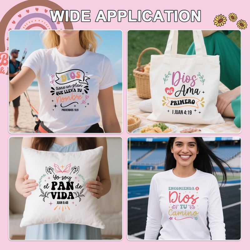 - 20Pcs Spanish Bible Designs: These colorful spanish bible iron on transfer for tshirt feature 20pcs diverse inspirational quotes designs, which is highly cost-effective and sufficient to meet the multiple needs