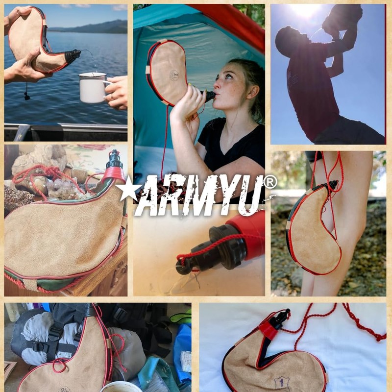 - ERGONOMIC DESIGN FOR EASY DRINKING: The red braided shoulder strap not only adds a stylish flair but also provides a convenient way to carry your canteen. The latex inner lining ensures that your beverages stay fresh, and the design allows for easy sipping – simply apply pressure to the center of the pouch for a hassle-free drinking experience.