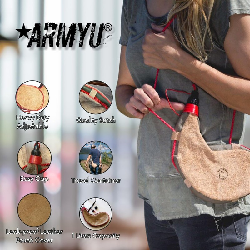 - 1 LITER CAPACITY: With a medium size and a generous 1-liter capacity, this canteen is perfect for carrying your favorite beverages on the go. Ideal for wine enthusiasts, hikers, and campers, it's equally adept at holding water or any other liquid of your choice.