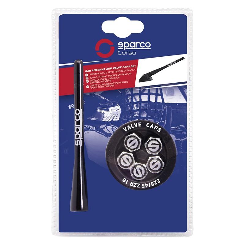 SPARCO Aerial BK + 5 Valve Caps, 11 x 0.4 x 0.4 cm