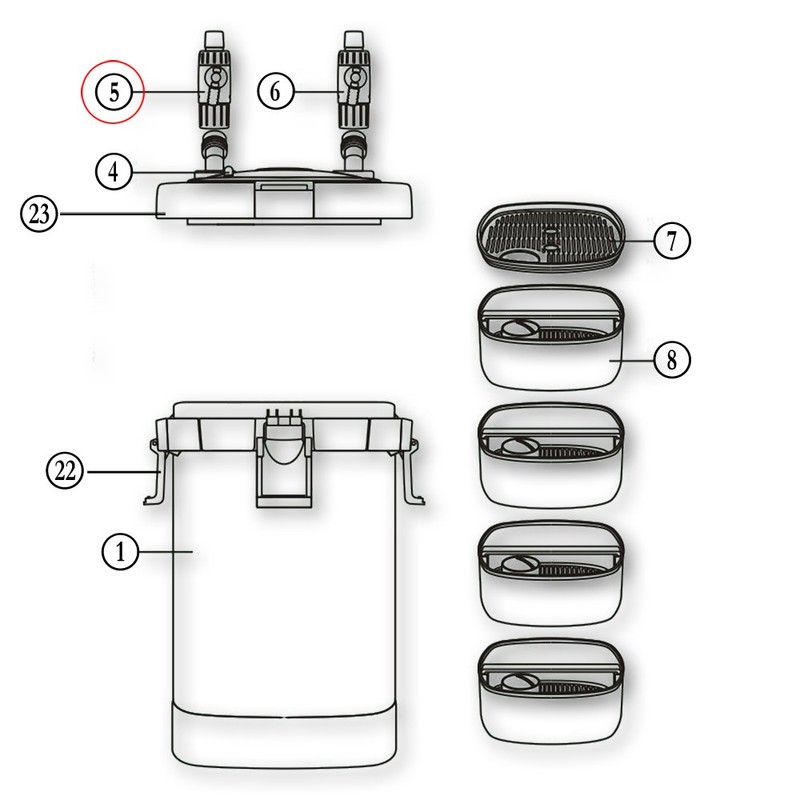 Spare Part In-/Outlet 16 mm SunSun HW-504/HW-505 - External Filter