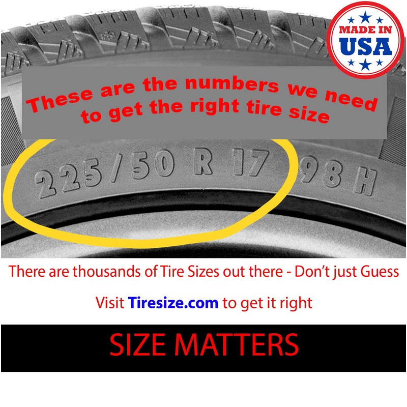 - Check the size on the sidewall of your tire (ex. 255/75R17=32 inch) and save the hassle of an exchange. Common sizes are: 245/75r17 (32"), 255/70r17 (32"), 245/75r16 (31"), 225/75r16 (29"), 30x9.5 (30") 215/75r15 (28"), 225/75r15 (28").