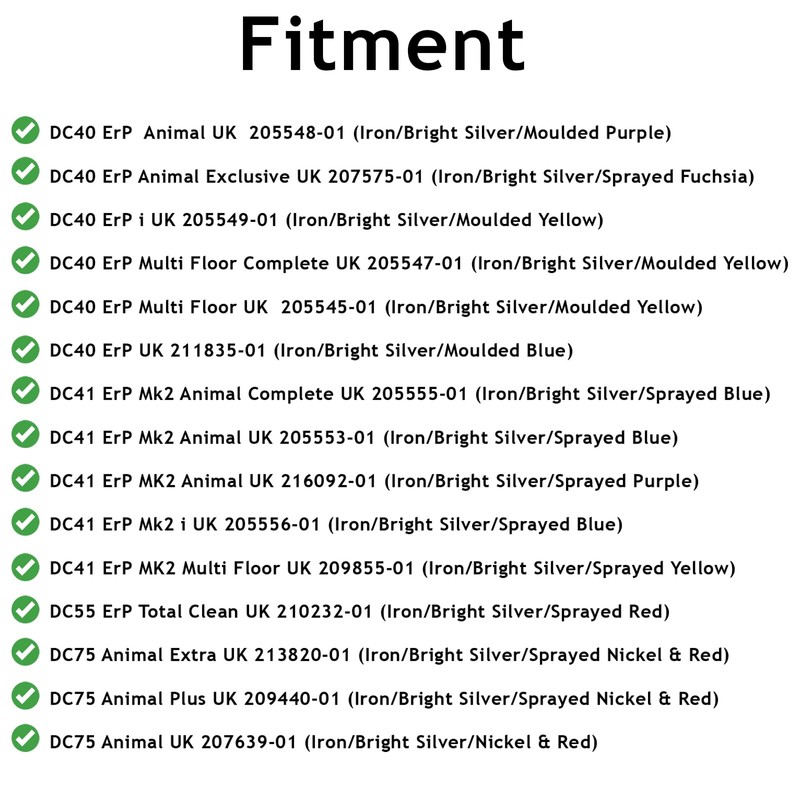 - Fits Models: DC40 ERP Animal UK (205548-01), DC40 ERP Animal Exclusive UK (207575-01), DC40 ERP i UK (205549-01), DC40 ERP Multi Floor Complete UK (205547-01), DC40 ERP Multi Floor UK (205545-01), DC40 ERP UK (211835-01), DC41 ERP Mk2 Animal Complete UK (205555-01), DC41 ERP Mk2 Animal UK (205553-01), DC41 ERP MK2 Animal UK (216092-01), DC41 ERP Mk2 i UK (205556-01), DC41 ERP MK2 Multi Floor UK (209855-01) DC55 ErP Total Clean UK (210232-01), DC75 Animal Extra UK (213820-01), DC75 Animal Plus UK (209440-01), DC75 Animal UK (207639-01)