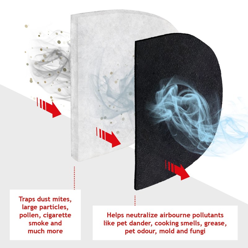 - This dual layer filter offers a high level of dust and dirt filtration and is ideal for homes with pets or smokers as it removes odours from the air, creating a more pleasant atmosphere.
