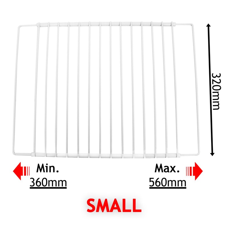 SPARES2GO Fridge Shelf compatible with Beko Refrigerator Freezer Adjustable White Plastic Coated Extendable Arms (Small, 360mm - 560mm x 320mm)