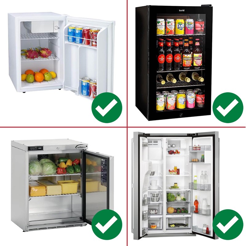 - Fully adjustable locking arms - fits all medium and small sized fridges and freezers and smaller fridge compartments