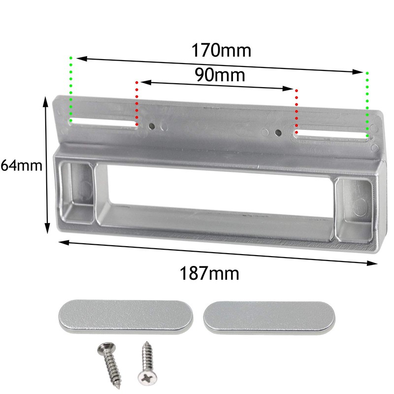 - Replacement fridge handle which can be fitted in place of an original handle where the screws are between 90-170mm apart.