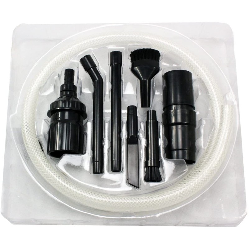 - Kit Contains: 1 adaptor to take 4 fittings: 30, 32, 35 and 38 mm, Pipe connector with adjustable suction fitting, Flexible tube (750mm x 15mm diameter), Curved 'elbow' extension pipe, Straight extension pipe Wide oval brush, Narrow round brush, Thin (chamfered) crevice tool.