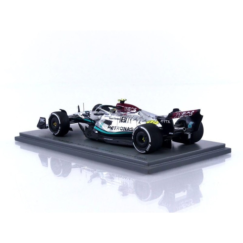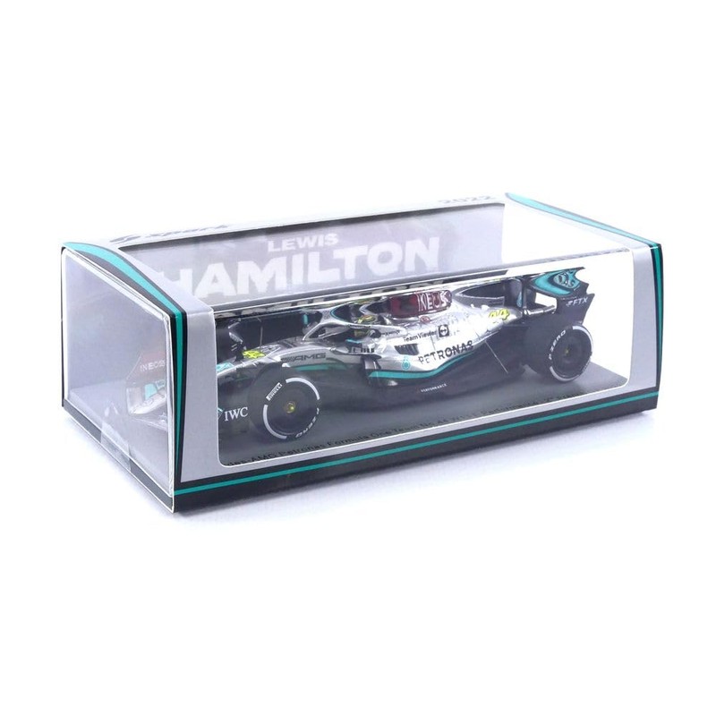 Spark 1:43 Scale Resin Model Grand Prix Car Compatible with Mercedes AMG Petronas W13 E Performance Lewis Hamilton (No.44 300th GP French GP 2022) in Silver