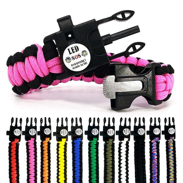Spark and Shine Paracord Bracelet - Pink - Bright LED SOS Light and Ferro Rod with Scraping Tool - Emergency Survival Whistle - 550 Paracord - Perfect Tool for The Outdoors (1)