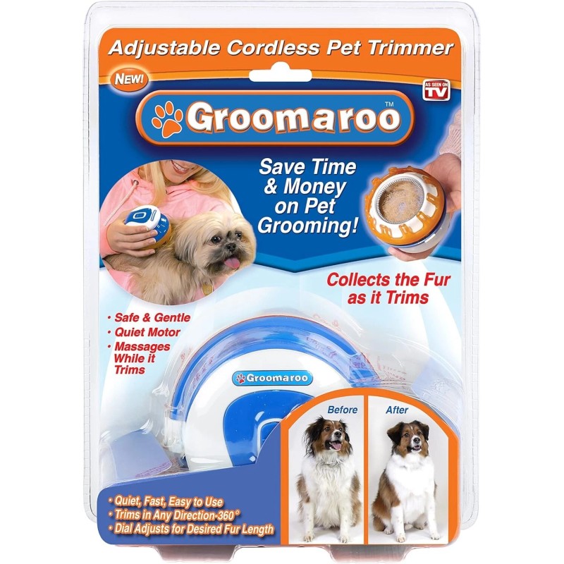 Spark Innovations Groomaroo Adjustable Cordless Pet Trimmer massages and trims NEW
