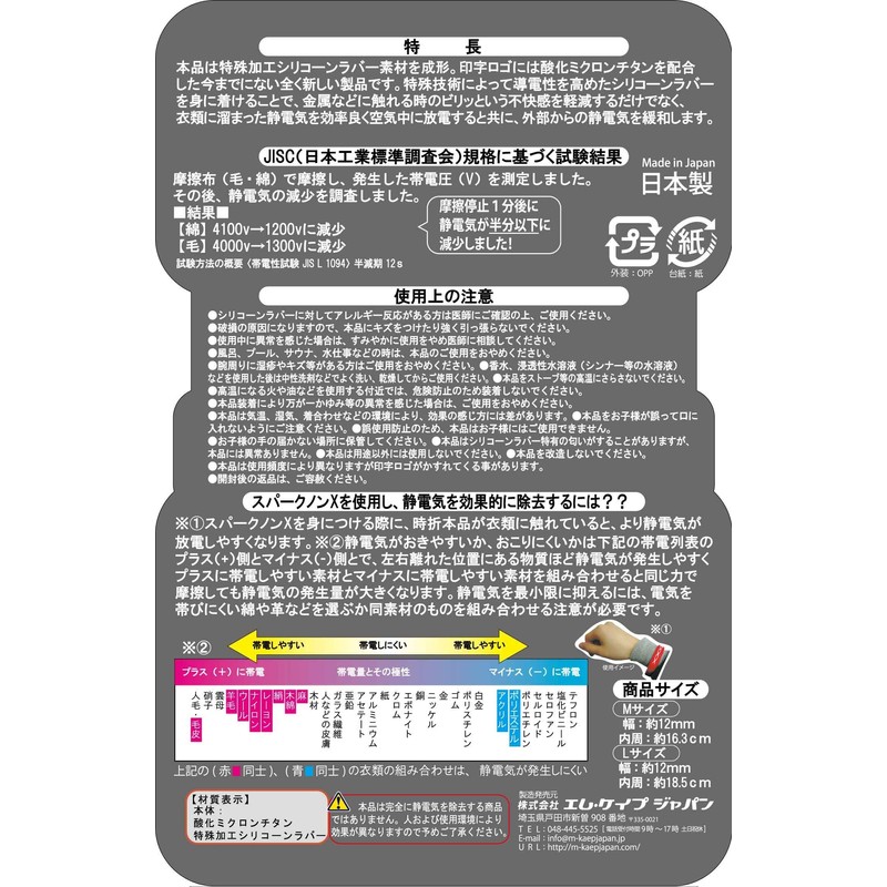 - Made in Japan with specially processed silicone rubber material that is gentle on the body. Static tested according to JISC standards, JIS L 1094 to prove the effectiveness