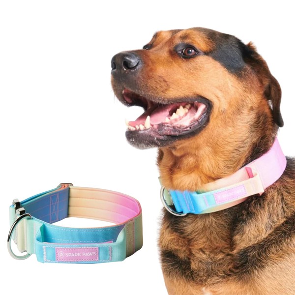 Spark Paws Tactical Dog Collar with Handle, Premium Quality, Robust Design for Large Dog Breeds, Pitbulls, Labradors, GSD, Pastel Icing, M, 5 cm