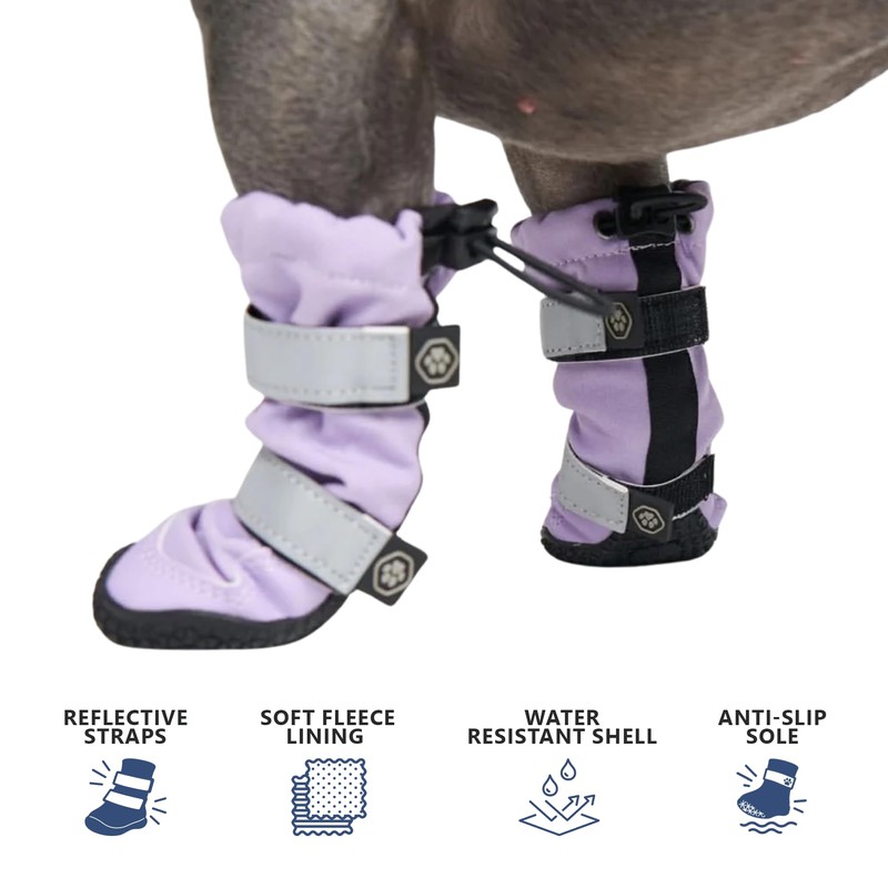 Spark Paws Dog Shoes, Water Resistant Dog Boots for Medium to Large Dogs, Non Slip, Breathable Dog Booties and Paw Protectors - 4PCS Doggie Hiking Boots with Reflective Straps - Lilac, A