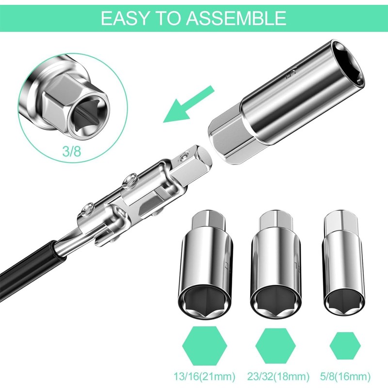 • Effortless Working: Provides flexibility in tight spaces through a wide joint function that supports multi-angle access, allowing effortless operating when reaching difficult angles for efficient spark plug maintenance;
