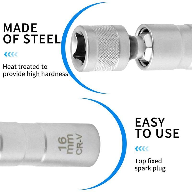 - High-quality material - durable and sturdy: The spark plug wrenches are made of robust which is resistant to abrasion, bending and corrosion. The surface is polished smoothly to minimise friction and ensure a long service life - even with daily use in workshops, the tool maintains its stability
