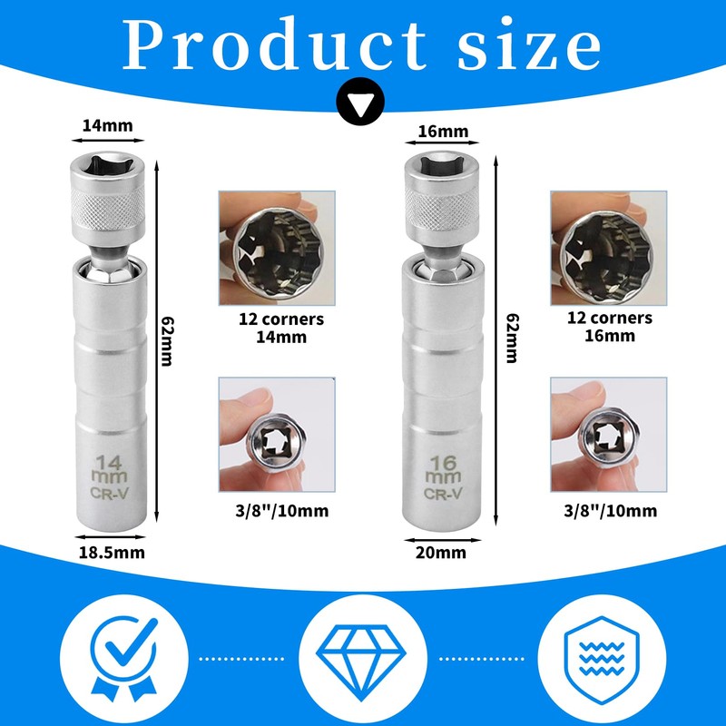 - Universally applicable for car repairs and more In addition to spark plug maintenance, the keys are also suitable for other screws or nuts with 14 mm or 16 mm size that occur in engines, chassis or other vehicle components. They are an essential accessory for hobby mechanics, car fans or professional workshops - compact, powerful and reliable.