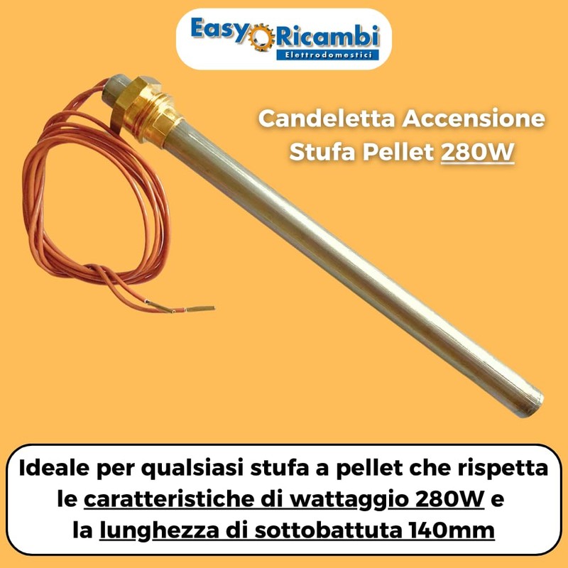 Spark plugs for pellet stoves; thread 3/8 280 W 150 mm 140 mm; diameter 9.9 m...