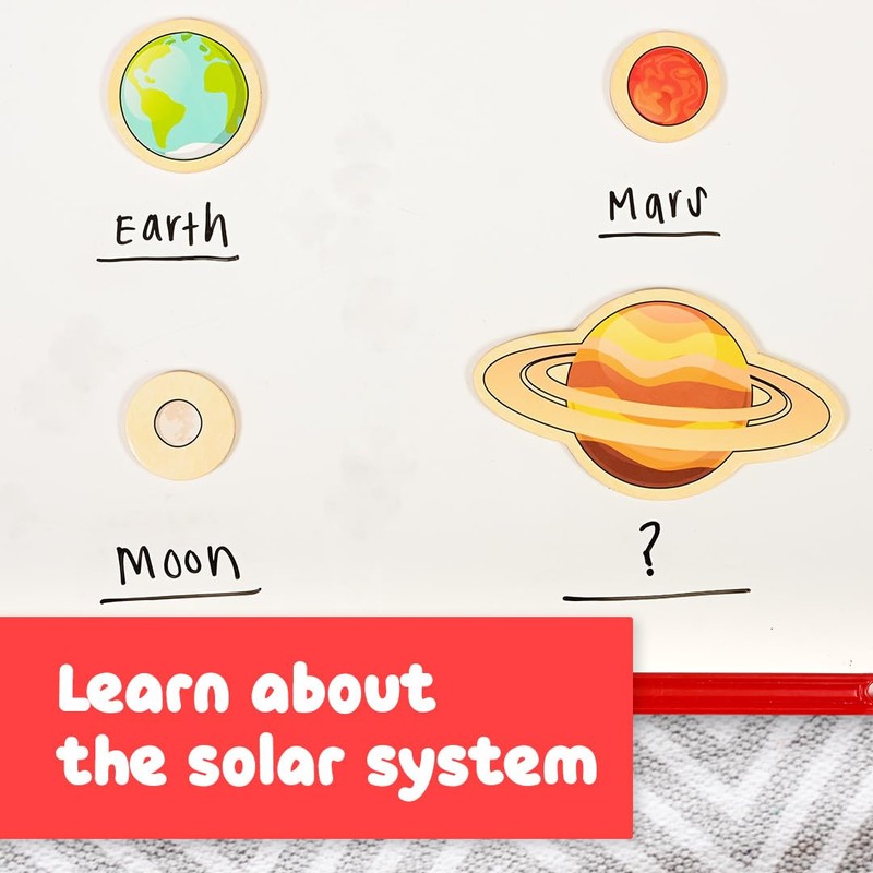 • 20 DIFFERENT SPACE SHAPES -- This wooden magnet set features 20 colorful magnets in different space-themed shapes. Decorate and play with rockets, planets, astronauts and more!