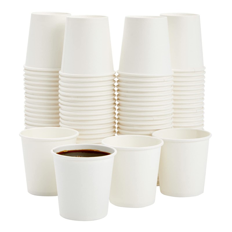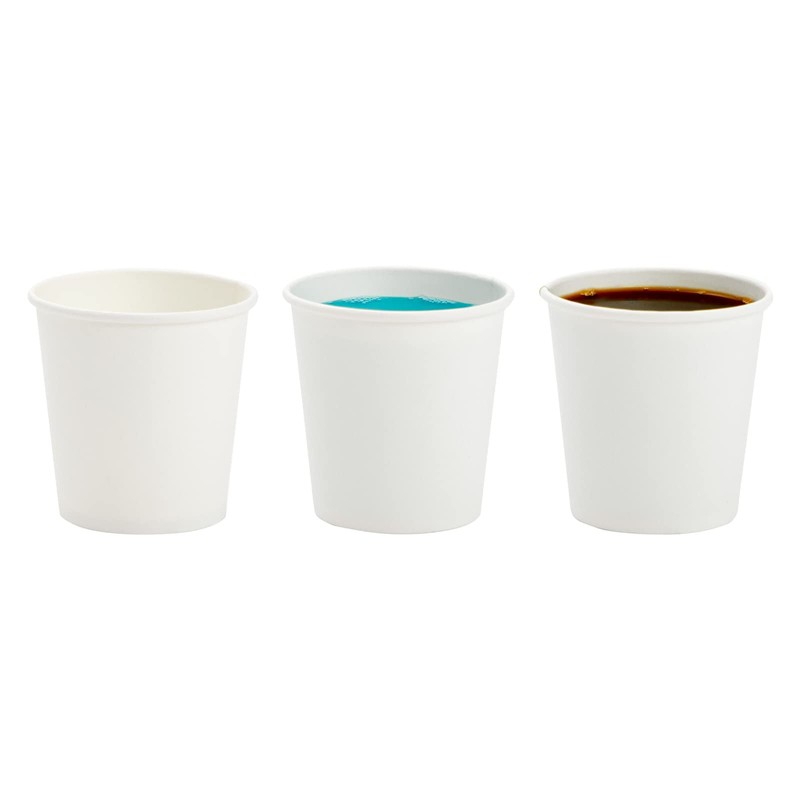 - 4 oz Paper Cups: Add this set of 100 paper espresso cups to the coffee bar to quickly pour and serve hot chocolate, espresso shots, and macchiatos to-go