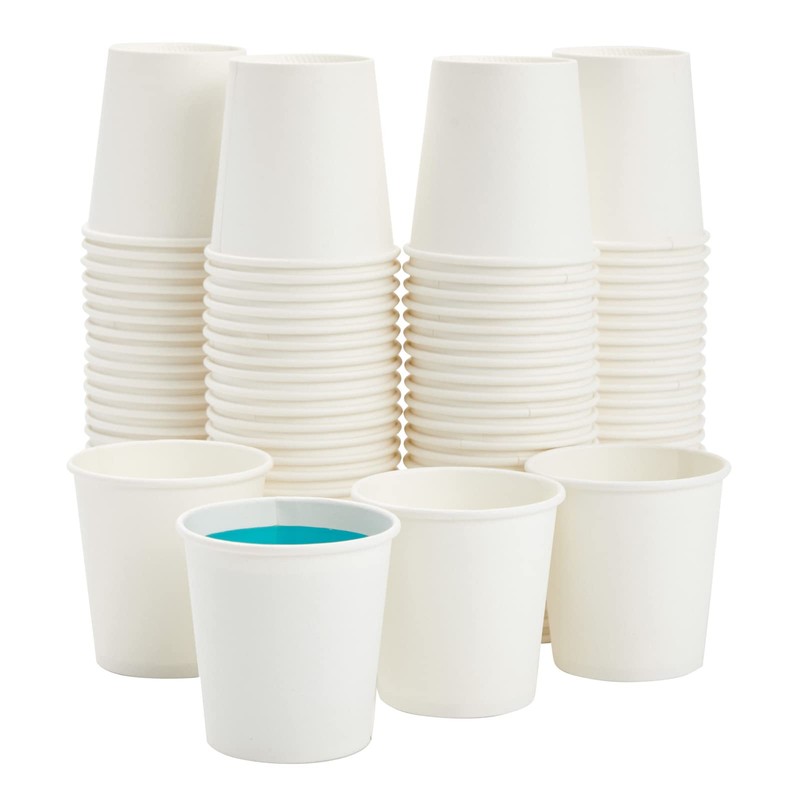Sparkle and Bash 100 Pack Disposable Mini Paper Cups for Espresso, Mouthwash, Tea, Coffee (4oz, White)