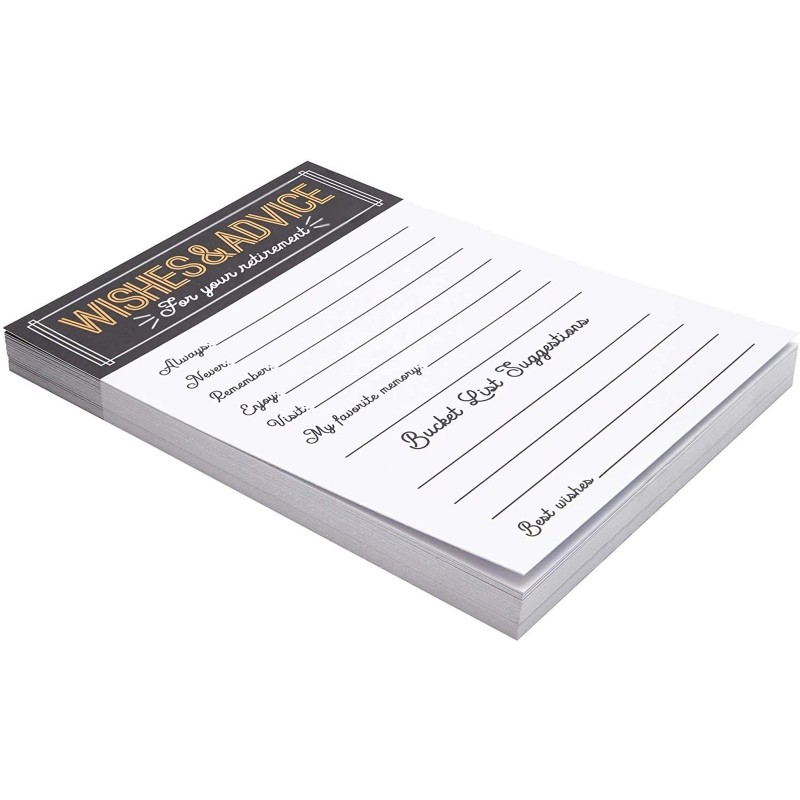 Give your wishes and advice to your men or women co-workers on their retirement day with the help of these retirement wishes cards. These cards are made of high-quality paper and are sturdy enough to be used as party supplies. This retirement party game makes the celebrations enjoyable. Also, these retirement party advice cards have enough space to write on.