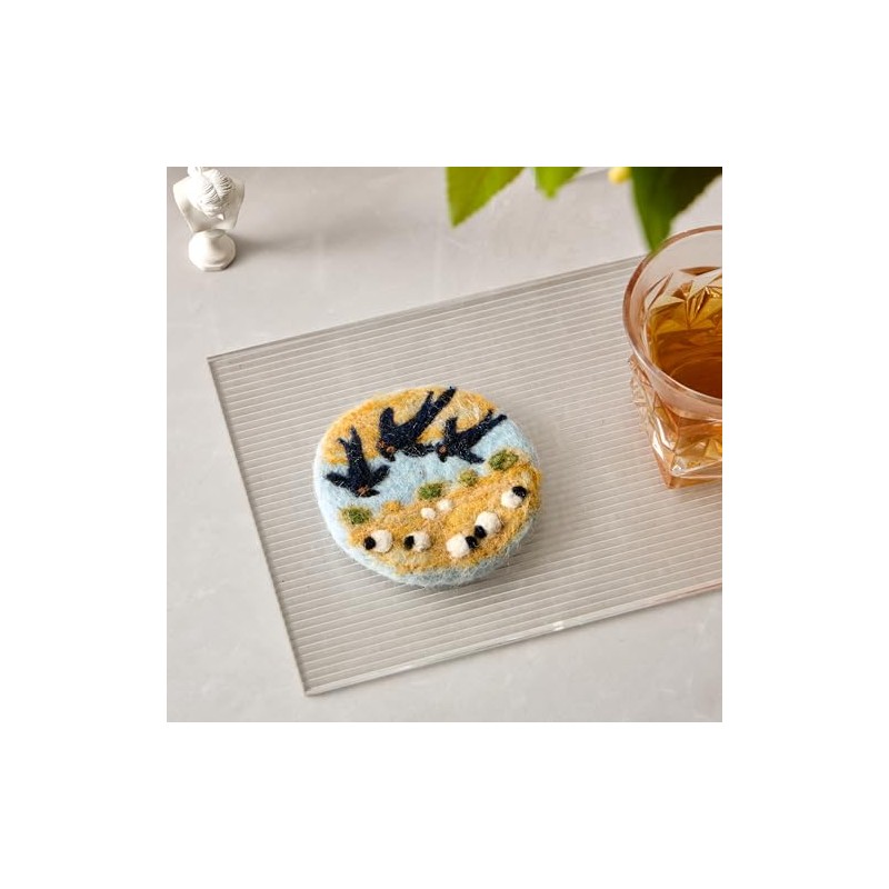 Sparkle Being Handmade Wool Felt Round Coasters for Drinks - Absorbent Coffee Cup Coasters for Tabletop Protection (Crows in Meadow) - Set of 2