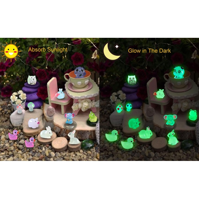 - Enchanting Glow - Illuminate your garden with 100 luminous mini resin animals that emit a gentle glow in the dark, adding a magical ambiance to your fairy garden.